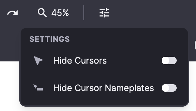 Leaders in the Space will now be able to control the cursor settings when making use of the Whiteboard. By selecting the settings icon in the toolbar, two options are presently available: