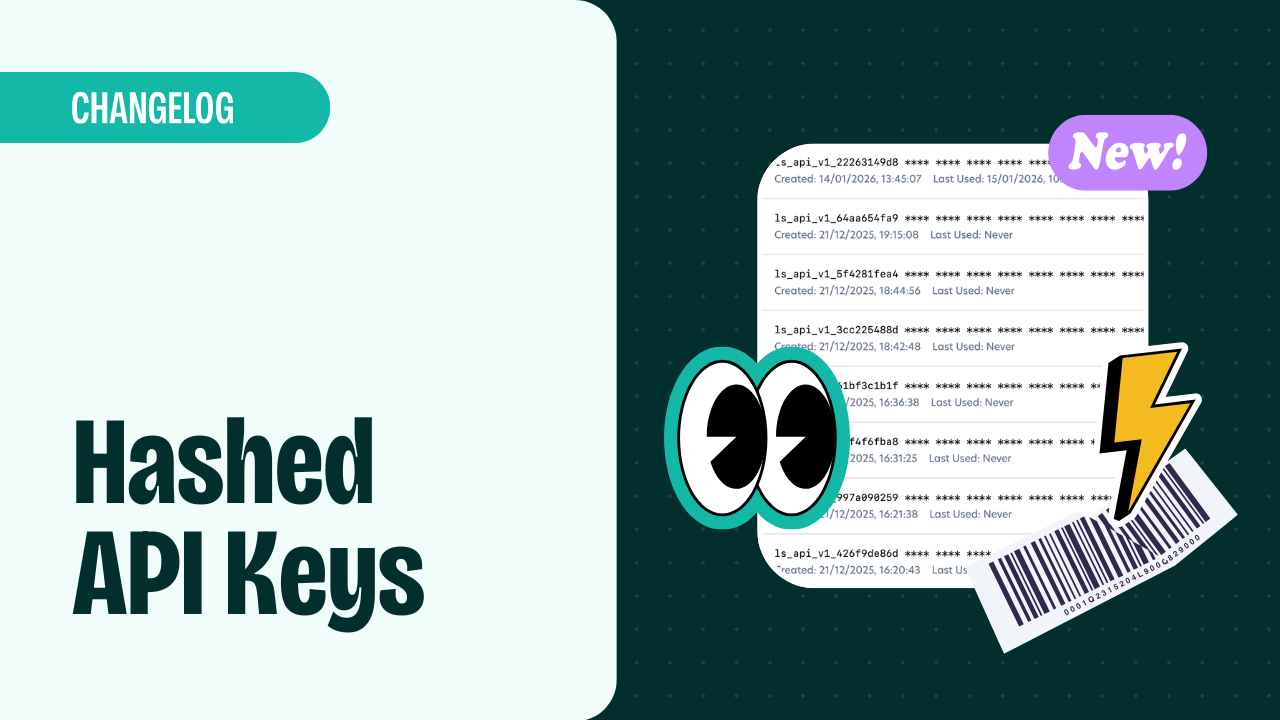 We've migrated from standard UUID API keys to hashed keys prefixed with ls_api_. You can now have multiple active API keys at the same time, and you can revoke unused/deprecated keys. This makes it easier to rotate API keys in your application safely.