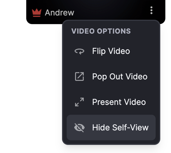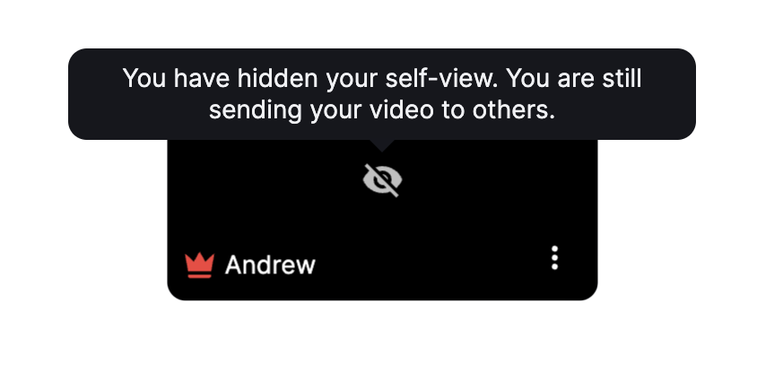 If you find yourself occasionally distracted by your own video feed, we have recently released an update that will allow you to hide your Self-View while still broadcasting your video to all other connected Users.