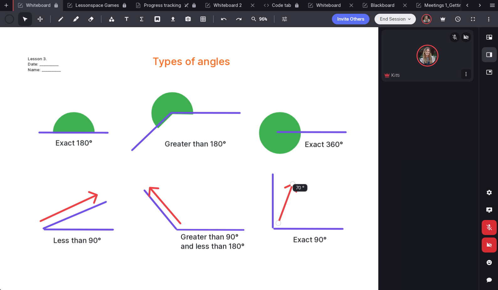 We've revamped our arrow and line tools! Now, when using these features on the whiteboard, you'll see the degree of angles displayed, making it easier to teach mathematical concepts. Hold down Shift to lock 15-degree increments for precise shapes or lines.