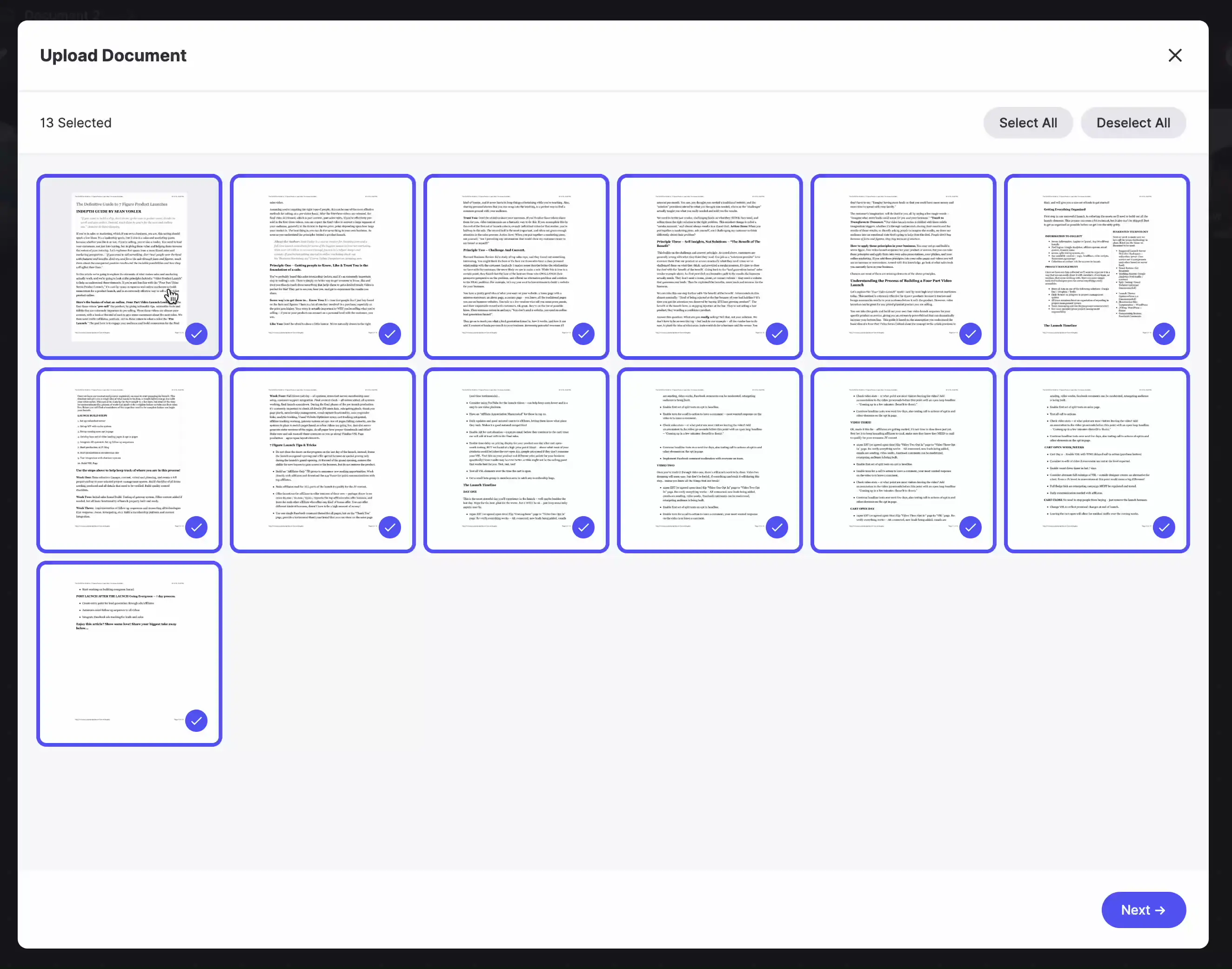 Importing a PDF is now much easier with an improved upload flow. You can now select which pages from a PDF you'd like to upload, as well as choose if you'd like to: