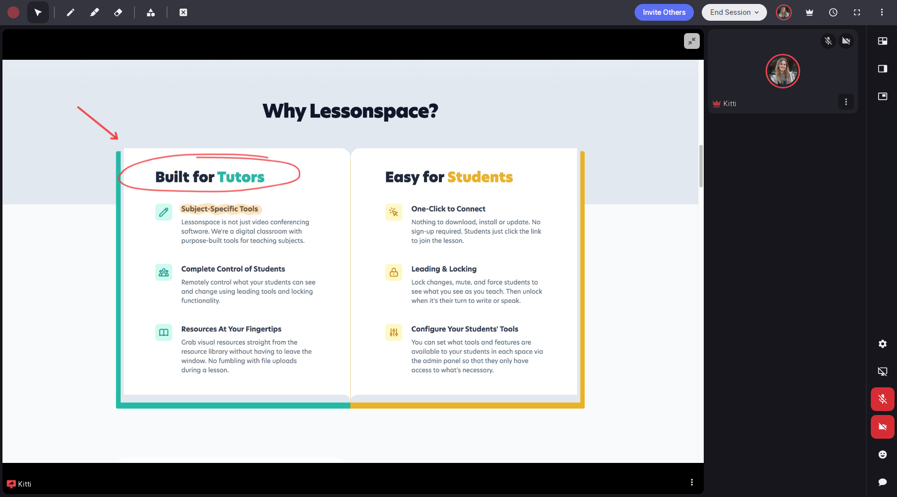 Add collaboration to your Space by annotating a shared screen. Use screenshare annotations to make your classroom interactive, highlight key information, and let students engage with the material. Start a screen share and use the top toolbar tools to begin annotating.